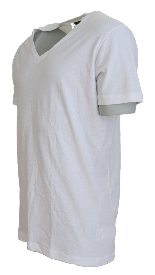 White Cotton Logo Embossed Crew Neck T-shirt