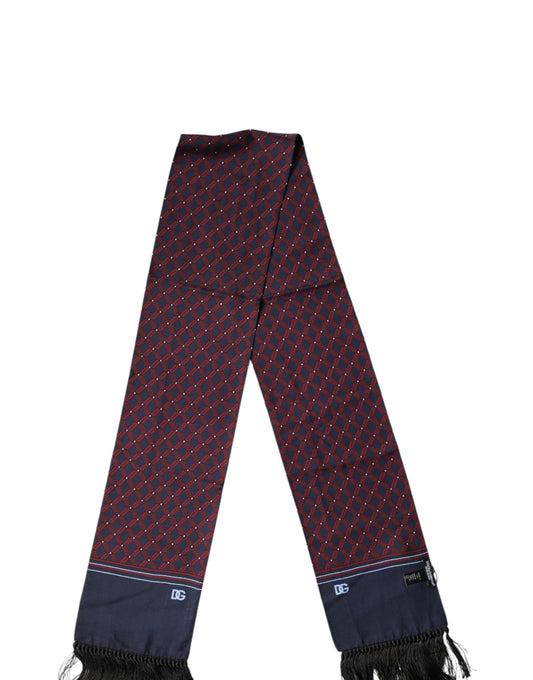 Maroon Patterned Fringes Wrap Foulard 138cm x 15cm Scarf