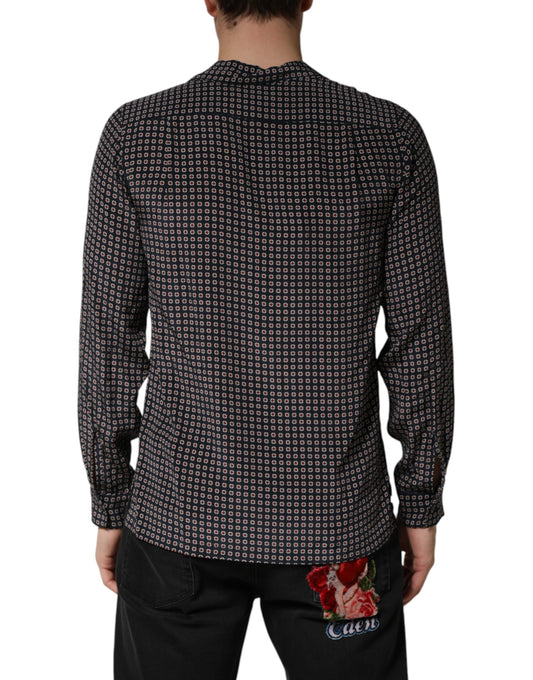 Black Patterned Silk Men Button Down Shirt